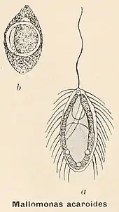 The algae genus Mallomonas contains the following species, forms, and varieties:[1]