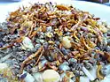 Iran | A staple Iranian dish of kashk and eggplant either, with garnishes of caramelized onions, roasted nuts, herbs and spices. |