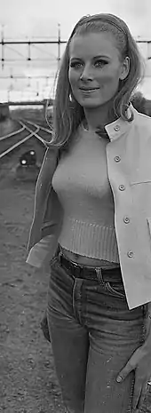 Gunilla Friden, Miss Sweden 1968, models at a train yard
