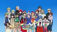 All of the female characters, but especially Mii's, bath and other partial nudity scenes from anime sparked a lot of controversy when the anime was released on North American DVDs as they had a lot uncensored images of the character's chests,[9][34] though Akio Watanabe is still credited with having great character designs.[35] Mania stats that most of the main anime characters are mostly visually appealing, though still stereotypical, designs and claims "the most interesting looking character" is Konami with Miyuki close behind. Mania goes further and claims that Miyuki actually fills the costume better cosplaying as a "Magical Girl" than Mii.[8]