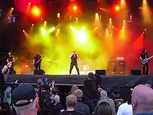 In the weeks leading up to the release of Condition Hüman the band toured North America with German hard rock veterans Scorpions.[54] After the new album's release, the band embarked on a tour of the United States in early 2016,[55] and a European tour in September of that year.[56] In October 2016, the band performed in Australia and the Far East.[57] On March 28, 2017, the band announced Rockenfield would take paternity leave to care for his newborn son, and that Kamelot drummer Casey Grillo would fill in his spot for upcoming live dates.[58] In August 2018, guitarist Mike Stone returned for a couple of months filling in for Parker Lundgren who had to take care of "personal things".[59]
