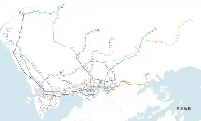 Shenzhen Metro is the metro system that serves the city of Shenzhen in Guangdong Province of the People's Republic of China. It is operated by the state-owned Shenzhen Metro Group (SZMC) except Line 4 which is run by MTR Corporation (Shenzhen). It was the seventh metro system to be built in mainland China; and having delivered 1297 million rides in 2016, it is one of the busiest metro systems in the world.