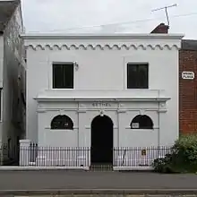 The Bethel Chapel, The Bars, Guildford, is a Strict Baptist Chapel affiliated to the Gospel Standard group of Strict & Particular Baptist churches.[20] The Church was established in 1879 and the present building opened in 1910.[21] Bethel still adheres to its original Articles of Faith and worship is conducted much as it was a century ago.[22] |