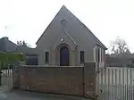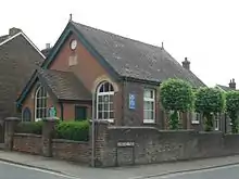 A round-windowed, red and yellow brick building of 1888 replaced the village's first Baptist chapel, first recorded in 1782. |