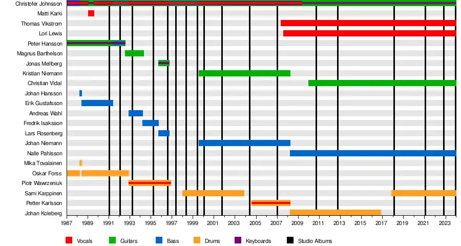 • Christofer Johnsson – guitars, keyboards, programming, Hammond organ, orchestral arrangement (1987–present), vocals (1987–2006)