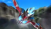 Ultraman Gingavictory (ウルトラマンギンガビクトリー, Urutoraman Gingabikutorī) is the fusion initiated by both Ultramen Ginga and Victory. It was made when Hikaru and Sho performed the Ultra Touch (ウルトラタッチ, Urutora Tatchi), and scans the Ultra Fusion Brace (ウルトラフュージョンブレス, Urutora Fyūjon Buresu) to the Victory Lancer. It was first shown during the Ultraman Ginga S: Showdown! Ultra 10 Warriors!!, which made after Hikaru and Sho were trained by Ultraman Zero to cooperate. Gingavictory first defeated a gigantic copy of Dark Lugiel and joined the other Ultra Warriors in fighting Etelgar. After Cosmos rescued Arina, Gingavictory launched an all-out attack on Etelgar and pursued him to space before defeating him for good. It was accessed again in Ultra Fight Victory to fight against Yapool, although the latter managed to revive Juda in his dying breath. However, the fusion didn't last longer when Super Grand King Spectre attacked them, forcing him to split.