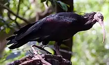Starlings are small to medium-sized passerine birds. Their flight is strong and direct and they are very gregarious. Their preferred habitat is fairly open country. They eat insects and fruit. Plumage is typically dark with a metallic sheen.