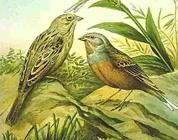 A depiction of two Cretzschmar's buntings