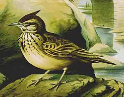 Larks are small terrestrial birds with often extravagant songs and display flights. Most larks are fairly dull in appearance. Their food is insects and seeds.