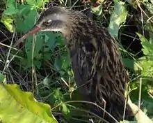 Rallidae is a large family of small to medium-sized birds which includes the rails, crakes, coots, and gallinules. The most typical family members occupy dense vegetation in damp environments near lakes, swamps, or rivers. In general they are shy and secretive birds, making them difficult to observe. Most species have strong legs and long toes which are well adapted to soft uneven surfaces. They tend to have short, rounded wings and to be weak fliers. Eight species have been recorded in Iowa.