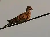 | Oriental dove | Streptopelia orientalis | R | Least concern | Scarce disperser, very prone to vagrancy and often found outside its defined migratory range | ![]() | |