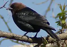 The icterids are a group of small to medium-sized, often colorful passerine birds restricted to the New World and include the grackles, New World blackbirds, and New World orioles. Most species have black as a predominant plumage color, often enlivened by yellow, orange, or red. Fourteen species have been recorded in Massachusetts.