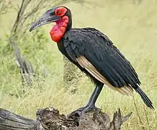 Bustards are large terrestrial birds mainly associated with dry open country and steppes in the Old World. They are omnivorous and nest on the ground. They walk steadily on strong legs and big toes, pecking for food as they go. They have long broad wings with "fingered" wingtips and striking patterns in flight. Many have interesting mating displays.