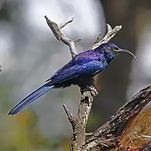 The indigobirds are finch-like species which usually have black or indigo predominating in their plumage. All are brood parasites, which lay their eggs in the nests of estrildid finches.