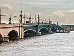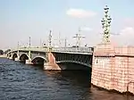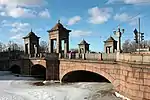 ![]() | 32 | Finland Railway Bridge | Финля́ндский железнодоро́жный мост | 100 m (330 ft)(x3) | 1,139 m (3,737 ft) | Arch Steel through arch Vertical-lift bridge | Railway bridge Neva | 1912 | Saint Petersburg 59°54′55.5″N 30°24′33.4″E / 59.915417°N 30.409278°E | Saint Petersburg | [S 36] |