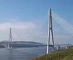 ![]() | 2 | Zolotoy Bridge | Золотой мост | 737 m (2,418 ft) | 2,100 m (6,900 ft) | Cable-stayed Steel box girder deck, concrete pylons | 6 lanes road bridge Zolotoy Rog | 2012 | Vladivostok 43°06′32.7″N 131°53′46.8″E / 43.109083°N 131.896333°E | Primorsky Krai | [S 16] |
