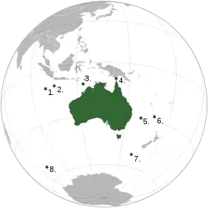 This is a list of the cicadas found in Australia including its outlying islands and territories. The outlying islands covered include: Christmas, Cocos (Keeling), Ashmore, Torres Strait, Coral Sea, Lord Howe, Norfolk, Macquarie, and Heard/McDonald.