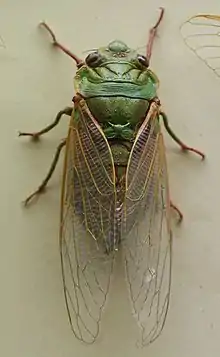 - ↑ Marshall, David C.; Moulds, Max; Hill, Kathy B. R.; Price, Benjamin W.; et al. (2018). "A molecular phylogeny of the cicadas (Hemiptera: Cicadidae) with a review of tribe and subfamily classification". Zootaxa. Magnolia Press. 4424 (1): 1–64. doi:10.11646/zootaxa.4424.1.1. PMID 30313477.