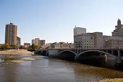 The name "Waterloo" supplanted the original name, "Prairie Rapids Crossing" shortly after Charles Mullan petitioned for a post office in the town. Since the signed petition did not include the name of the proposed post office location, Mullan was charged with selecting the name when he submitted the petition. Tradition has it that as he flipped through a list of other post offices in the United States, he came upon the current name. The city is part of the Waterloo–Cedar Falls Metropolitan Statistical Area. |