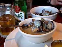 This is a list of clam dishes and foods, which are prepared using clams as a primary ingredient. Edible clams can be eaten raw or cooked. Preparations methods include steamed, boiled, baked or fried.