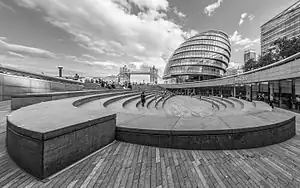 The Scoop amphitheatre in London, with City Hall and Tower Bridge visible in the background.