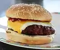 | Jucy Lucy | ![]() | Two bars on the same street in South Minneapolis both claim to have invented the sandwich: Matt's Bar and the 5-8 Club.[25] | A cheeseburger that has the cheese inside the meat patty rather than on top. A piece of cheese is surrounded by raw meat and cooked until it melts, resulting in a molten core of cheese within the patty. |