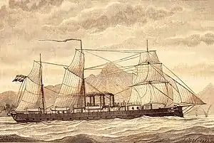 - ↑ Built in 1854 as a wooden steamship and converted to a casemate ironclad in 1865.[3]
