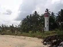 | Kribi Lighthouse (Range Front) | ![]() | 1906 | 2°56′22.3″N 9°54′14.3″E / 2.939528°N 9.903972°E | Fl (3) W 12s. | 18 metres (59 ft) | 25236 | D4134 | 14 |