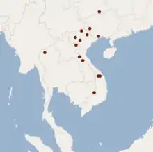 Previously seen in dipterocarp forests with grasslands. No confirmations since 1970; possibly extinct. | CR, possibly EX