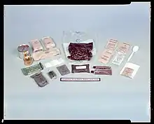 The new model type I combat ration is supplied in olive drab retort pouches and overwrapped in an olive drab bag.[36]