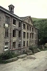 Notes: Two-storey gritstone buildings, formerly a cotton mill of the 1780s and later a chemical works. Next to the medieval manorial corn mill.[6]