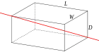 | Solid cuboid of height D, width W, and length L, and mass m, rotating about the longest diagonal.