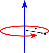 A point mass does not have a moment of inertia around its own axis, but using the parallel axis theorem a moment of inertia around a distant axis of rotation is achieved. |