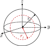 | Sphere (shell) of radius r2 and mass m, with centered spherical cavity of radius r1.