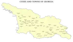 This is a list of the cities and towns (Georgian: ქალაქი, k'alak'i) in Georgia, according to the 2014 census data of the National Statistics Office of Georgia.[1] The list does not include the smaller urban-type settlements categorized in Georgia as daba (დაბა). The list also does not include cities and towns in the disputed territories of Abkhazia and South Ossetia.