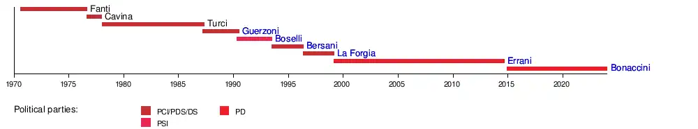 | 9 | Sergio Cavina | PCI | 1 year, 215 days | 1 |