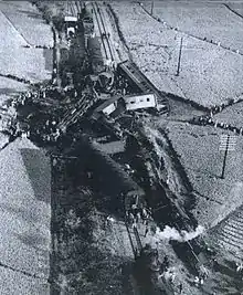 • October 15 – British Nigeria – A breakdown crane on the way to a goods train derailment comes uncoupled from its locomotive, rolls downhill 3 miles (4.8 km) backwards, and crashes into a passenger train 21 miles (34 km) south of Ibadan, killing at least 34 people. A young survivor runs for help 4.8 km (3 miles) to the nearest road, where he happens upon the district officer and his senior medical officer; but rescue is hampered as there is no other crane nearer than Enugu.[40]