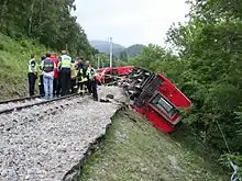 - ↑ "Passengers seriously injured after train derails in Austria". Darlington and Stockton Times. Newsquest. 26 June 2018. Retrieved 27 June 2018.
