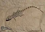 Gekkonidae is a large family of cosmopolitan lizards. It is a remarkably diverse family with upwards of a thousand species.[9] Bearing specially-designed pads on their toes, geckos are granted effective adhesion to several surfaces. Vernacularly known as “بريعصي [10]", there are at least 10 species in Qatar.