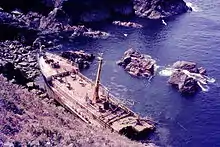| Point Law | ![]() Point Law on the rocks in Alderney, Channel Islands in 1975. The coastal tanker ran aground on the south west coast of Alderney, Channel Islands. Her crew were rescued by the St Peter Port Lifeboat, Alderney Fire Brigade, a cliff rescue team and a French helicopter.[26] |