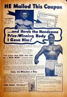 Adverts by Charles Atlas were common in American pulp magazines. This one appeared in Weird Tales in 1941.