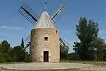 | Régusse | Moulins de la Gaieté | Moulin Tour | Two mills, one with sails, one without. Moulins-a-Vent (in French) |