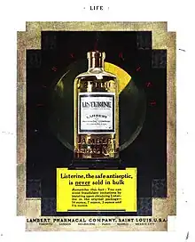 - ↑ Lambert Pharmacal (1930). "Listerine gets rid of dandruff". Popular Science. 116 (5): 17. ISSN 0161-7370.