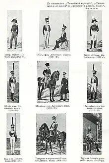 The corps, except for the guard units, was recruited from Lithuanians and Poles, which set it apart from the rest of the Imperial Russian Army.[3] The guard units were recruited mostly from Russians.[1]