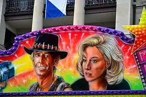 When Barry Humphries went (by sea) to London in 1959, he and then wife Rosalind lived in Ladbroke Grove in Kensington. He made an impromptu visit to "an Earl's Court pub, in the middle of Kangaroo Valley, as it was sometimes called. He fell physically ill and frightened by what he saw. The packs of loutish Australian youths swilling beer and swearing revived painful memories of the bullies at Melbourne Grammar."[9] This theme re-emerged more affectionately from 1964 in Humphries' Barry McKenzie series; the character lived in an Earl's Court flat.