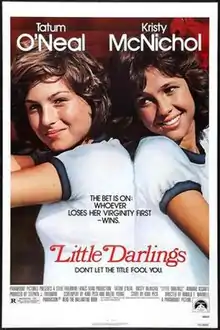 Little Darlings is a 1980 American teen comedy-drama film starring Tatum O'Neal and Kristy McNichol and featuring Armand Assante and Matt Dillon. It was directed by Ronald F. Maxwell.[3] The screenplay was written by Kimi Peck and Dalene Young and the original music score was composed by Charles Fox. The film was marketed with the tagline "Don't let the title fool you", a reference to a scene in which the character of Angel tells Randy, "Don't let the name fool you."