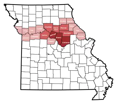 The Missouri Division of the Sons of Confederate Veterans defines the "heart" of Little Dixie as having consisted of the following counties:[4]