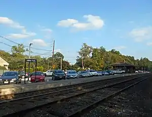 ![]() Little Falls station building in September 2014 facing eastbound towards Great Notch. | |||||||||||||||||||||||