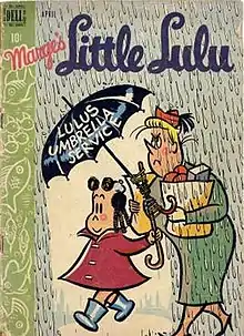 Little Lulu appeared in ten issues of Dell Comics' Four Color comic book series (#74, 97, 110, 115, 120, 131, 139, 146, 158, 165), before graduating to her own title: Marge's Little Lulu in 1948.[11]
