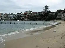 There is a concrete boat ramp on the eastern end of the beach, one of the few concrete ramps on the northern shore of Port Jackson.[1] Behind the beach are public toilets and a kiosk. The beach is a popular place for families because of the presence of the baths and a grassed picnic area, as well as a children's playground.